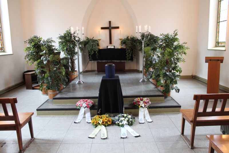 Die Predigt und Aussegnung erfolgte durch einen Pfarrer der Katholischen Kirchengemeinde "Maria unter dem Kreuz", Hildegardstr. 3a, 10715 Berlin in der Friedhofskapelle.