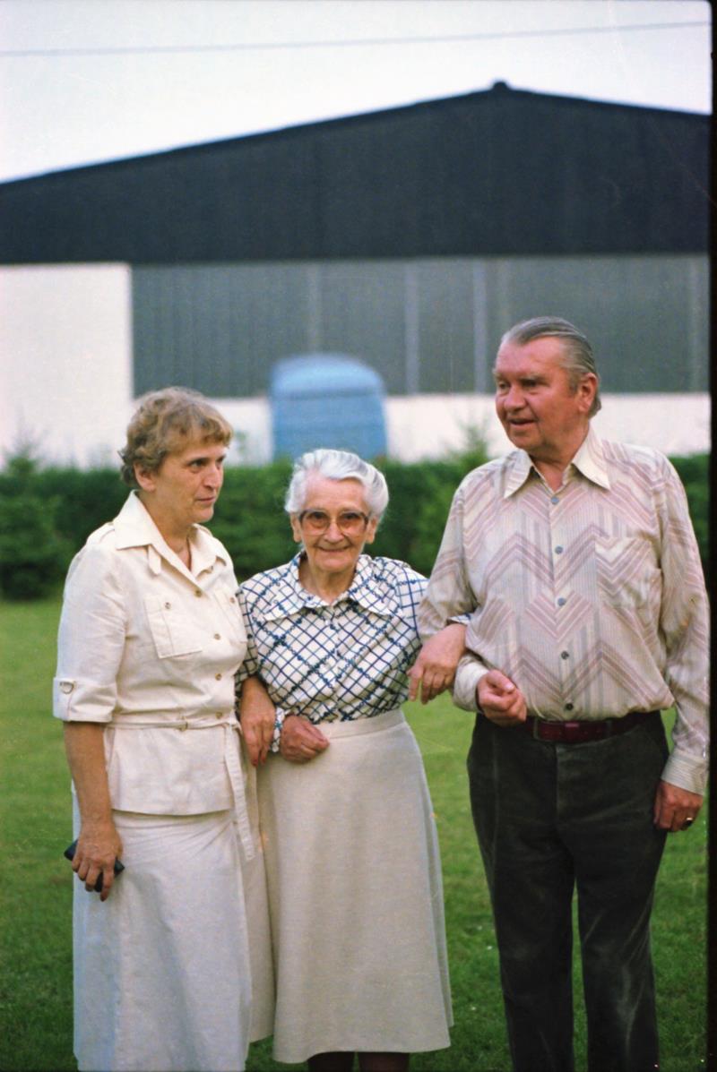 Das Foto entstand ca. 1957Auf diesem Foto sind meine Mutter, mein Vater und die Großmutter Anna (∗1891 - †1989) im Jahr 1975 im Garten des Elternhauses im Coesterweg zu sehen.